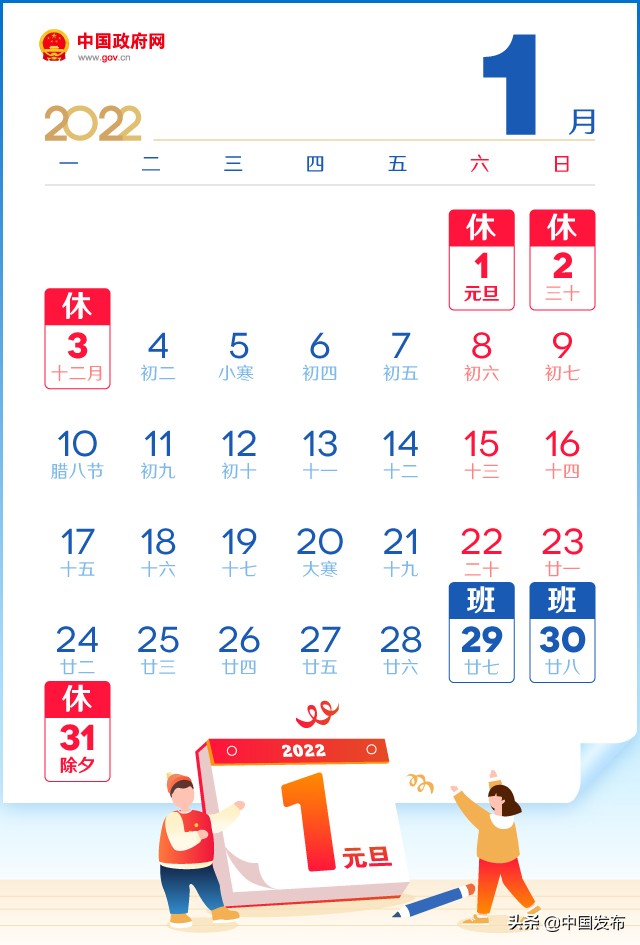 【导读】中国政府网10月25日印发《关于2022年部分节假日安排的通知》(以下简称《通知》)。根据《通知》,2022年劳动节放假5天,春节假期前、劳动节假期后连上7天班。元旦:2022年1月1日至3日放假,共......[详细]