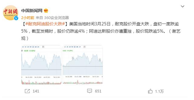 【导读】【#耐克阿迪股价大跌#】美国当地时间3月25日,耐克股价开盘大跌,盘初一度跌逾5%,截至发稿时,股价仍跌逾4%;阿迪达斯股价亦遭重挫,股价现跌逾5%。猜你喜欢新疆就美英加无理制裁发表声明 声明全文内容......[详细]