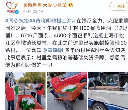 【导读】 黄晓明为上海捐赠上万斤粮油面!还有口罩和消毒车,自曝对上海情感深厚,接下来就让我们一起来看看具体的消息介绍,希望对大家有所帮助,感兴趣的话记得跟朋友一起分享。 近日,黄晓明官方爱......[详细]