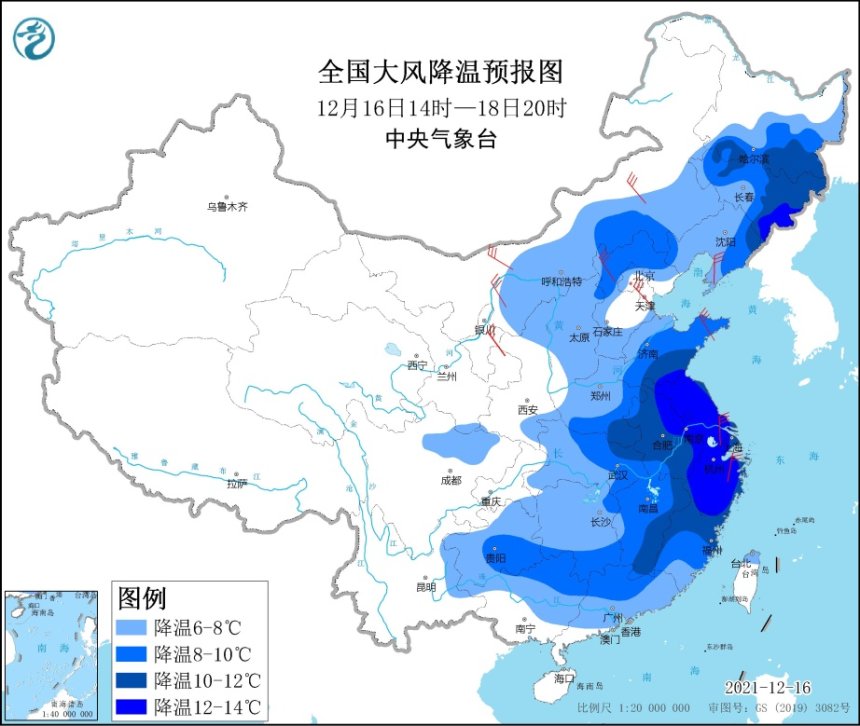 【导读】中央气象台12月16日10时继续发布寒潮蓝色预警:受冷空气影响,预计,12月16日14时至18日20时,我国中东部大部地区将降温6~10℃,其中,吉林东南部、山东南部、安徽东部、江苏大部、浙江大部、上......[详细]