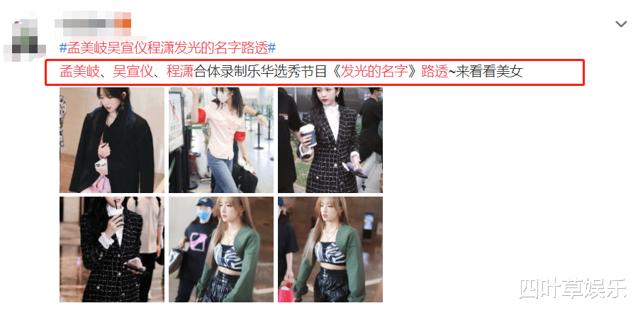 【导读】 孟美岐吴宣仪程潇节目路透 这几年选秀节目备受观众喜欢,也会引起不少的话题度和热度,近乐华出品了一档选秀节目《发光的名字》,该选秀节目是邀请到乐华旗下的练习生参加录制,并且这一档选......[详细]