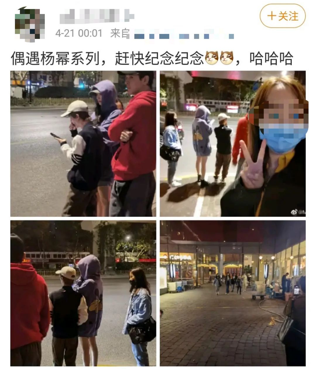 【导读】4月21日凌晨,有网友晒出了自己在上海偶遇杨幂和郭敬明的照片,据了解当天两人深夜聚餐结束在街边并肩而站,虽然杨幂戴了帽子但还是很明显地被认了出来。杨幂身穿一件紫色卫衣,下衣失踪的穿搭方式露出光着的腿,......[详细]