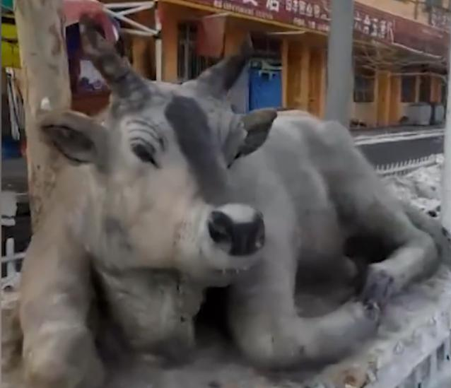 【导读】 1月4日,新疆伊犁一位大叔用雪堆了一头栩栩如生的牛,为了让整头牛看起来十分的逼真,大叔还用煤渣调整雪的颜色。 视频截图 大叔阿不都克因介绍,他并没有受过专业的训练,堆这......[详细]